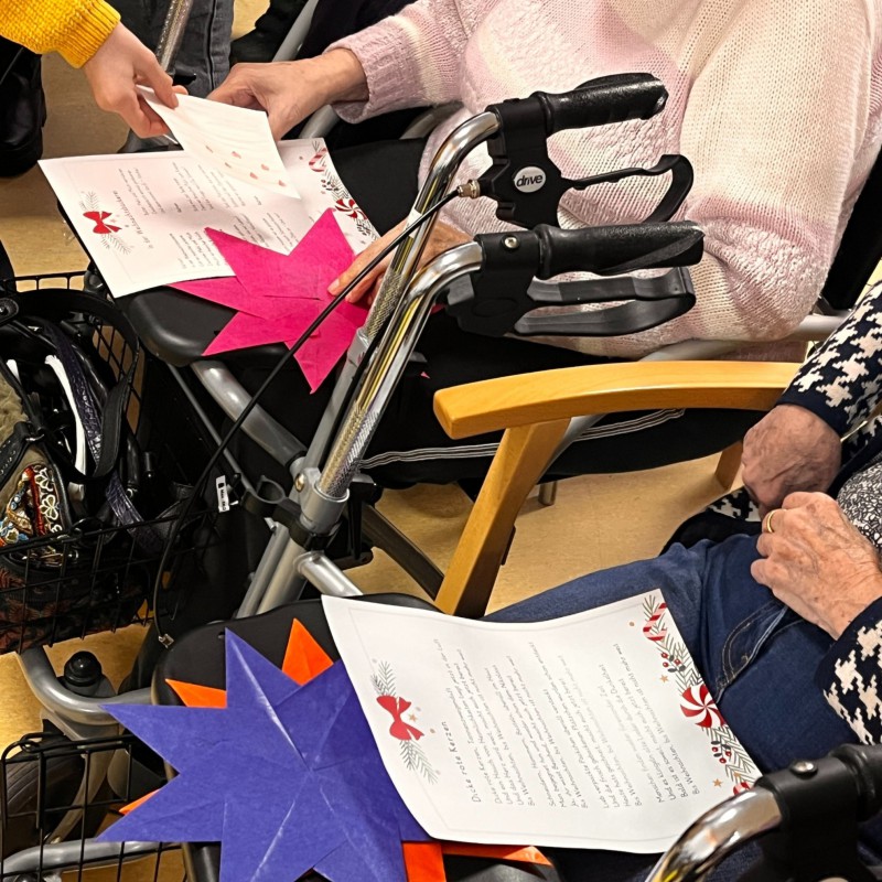 Während des Besuchs überreichten die Kinder ihre Geschenke und wurden herzlich empfangen. Gemeinsam mit den Bewohnerinnen und Bewohnern sangen sie in stimmungsvoller Atmosphäre einige Weihnachtslieder. Eine Schülerin spielte ein Stück auf dem Klavier und nachdem eine Bewohnerin ein Weihnachtsgedicht vorgetragen hatte, entschied sich ein Schüler spontan, ebenfalls sein gelerntes Gedicht aufzusagen.
