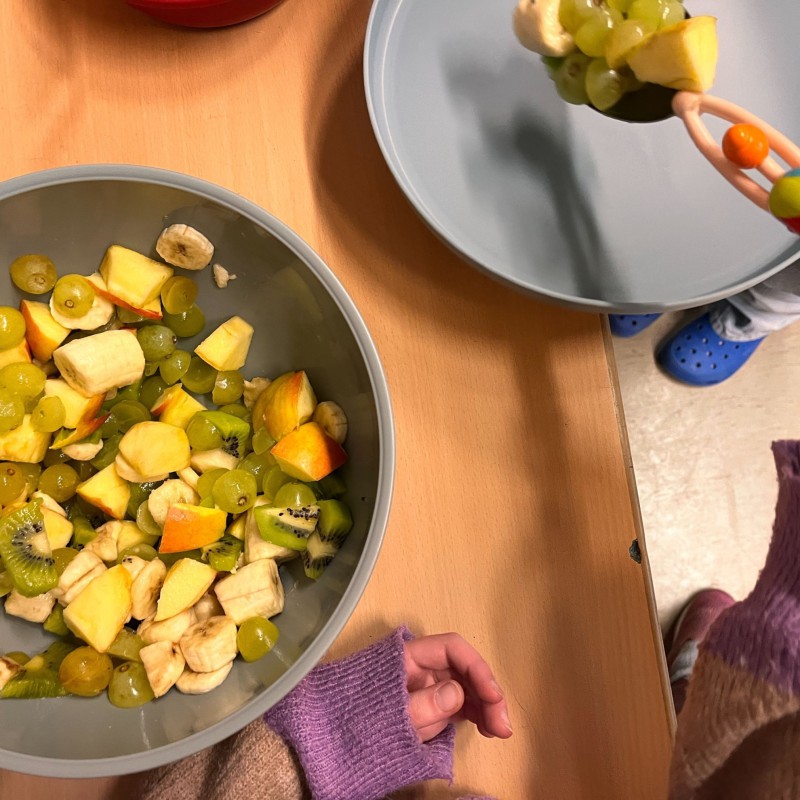 Nach einer kleinen theoretischen Prüfung folgte der praktische Abschluss: Die Drittklässler luden ihre Patenkinder aus den 1. Klassen ein und bereiteten für sie mit viel Engagement und Freude Knabbergemüse und Obstsalat zu. Anschließend wurde in gemütlicher Runde zusammen gegessen.