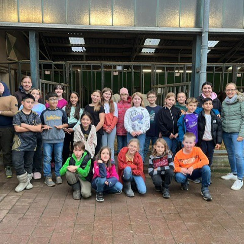 Am ersten Abend haben alle Klassen eine Nachtwanderung gemacht. Wir sind eine große Runde über Wiesen und Felder gelaufen. Dort haben wir ein Wildpferd gesehen. Das war toll. Am nächsten Tag waren viele Kinder im Streichelzoo. Dort durften wir mit den Kaninchen kuscheln. Die Kaninchen waren so weich. Dort gab es auch Ponys die wir striegeln konnten. Die Jungs gingen auch gerne Fußball spielen. Am zweiten Abend gab es eine Disco. Alle haben getanzt und hatten viel Spaß. Die Musik war sehr laut. Manche Kinder waren vom lauten Mitsingen heiser. In der Strohscheune haben wir immer verstecken und fangen gespielt. Wir konnten uns im Stroh wälzen. Das hat richtig Spaß gemacht. Am letzten Abend haben wir am Lagerfeuer Stockbrot gemacht. Das war lecker. Die Hüpfburg war dann auch aufgeblasen. Die Klassenfahrt war so schön. Schade, dass unsere Lehrerin Frau Althoff nicht mitkommen konnte, weil sie krank war. Frau Hobbs und Heiko waren aber auch so lieb zu uns.