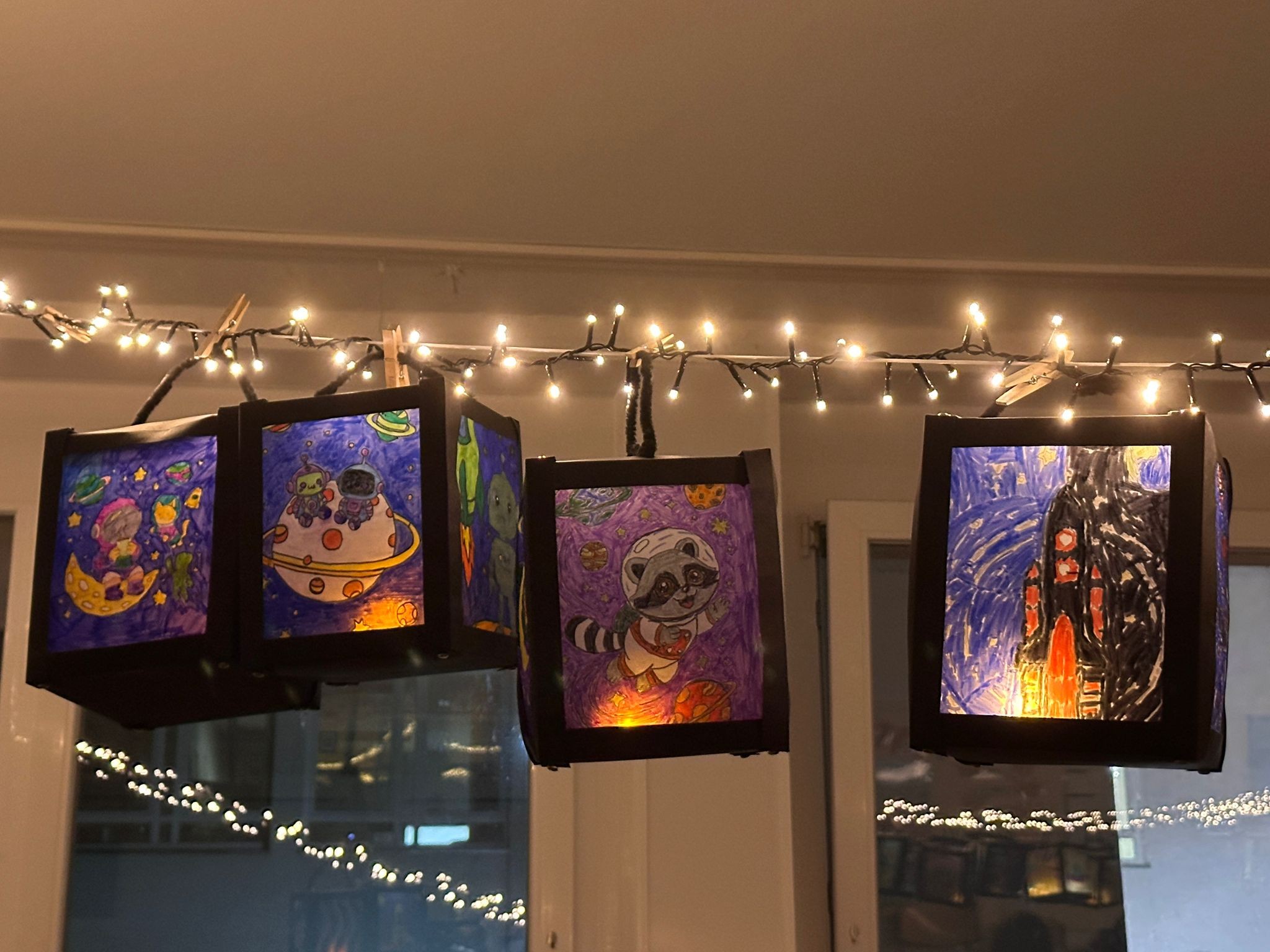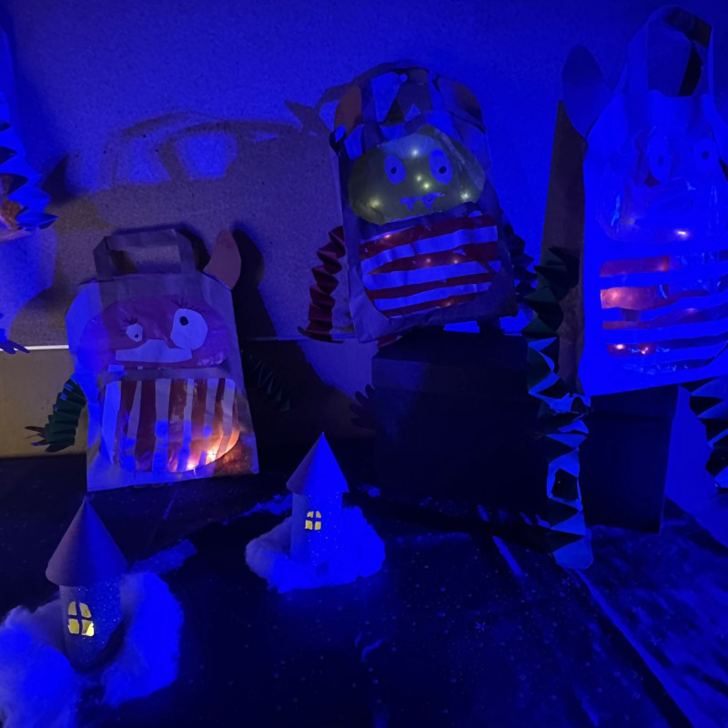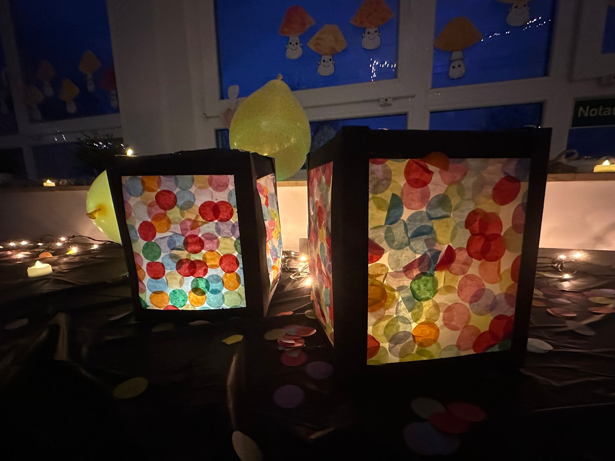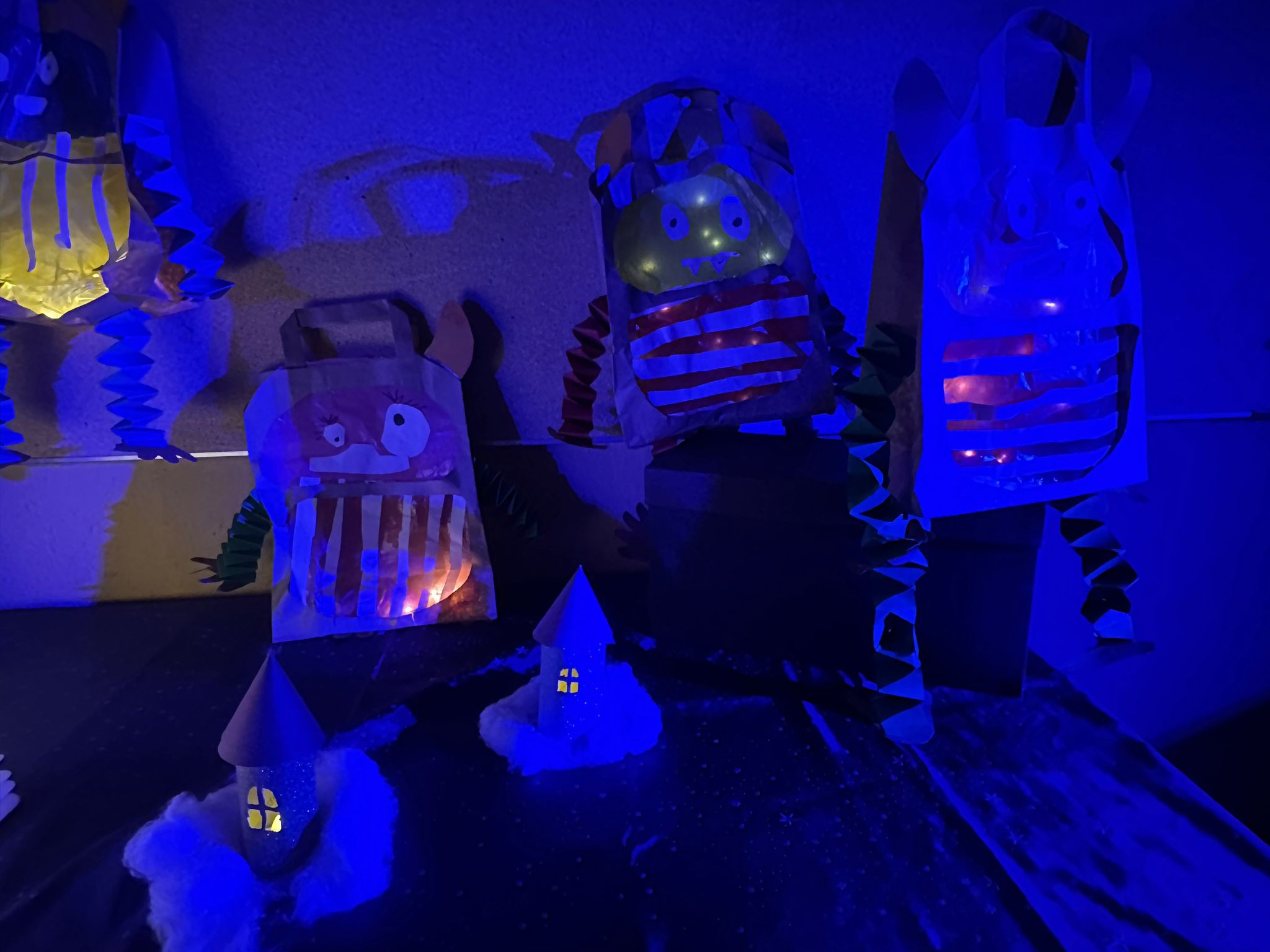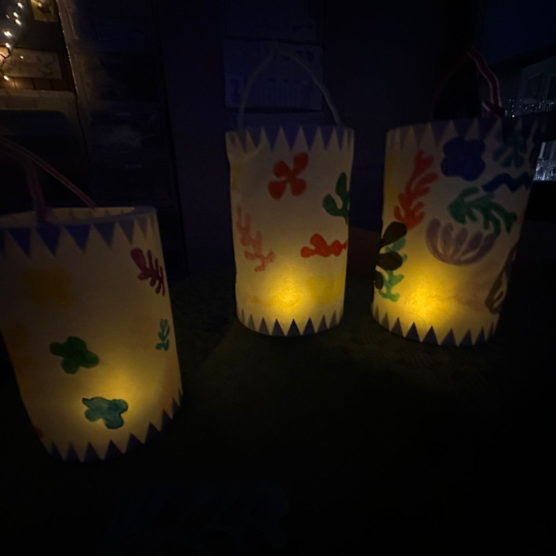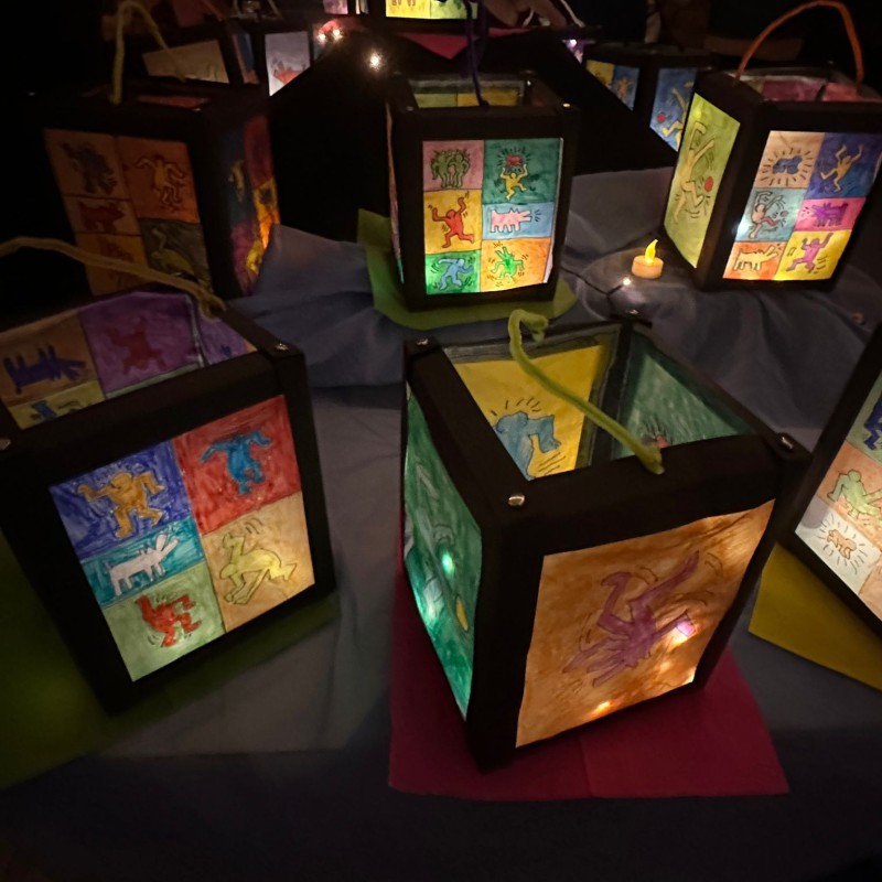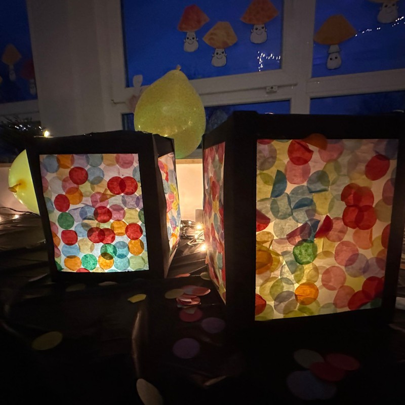 Nachdem alle gemeinsam auf dem Schulhof das Lied „Lichterkinder“ gesungen hatten, öffneten die Klassen die Türen, und die zahlreichen Besucherinnen und Besucher konnten die vielen Laternen betrachten, die zuvor im Unterricht entstanden waren. Jede Klasse präsentierte dabei ihre ganz eigenen kreativen Ideen und Gestaltungstechniken.