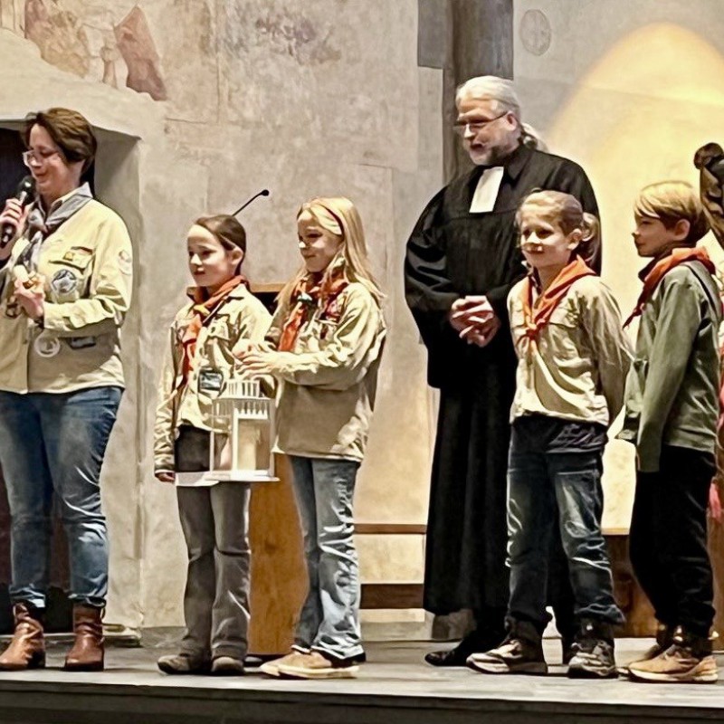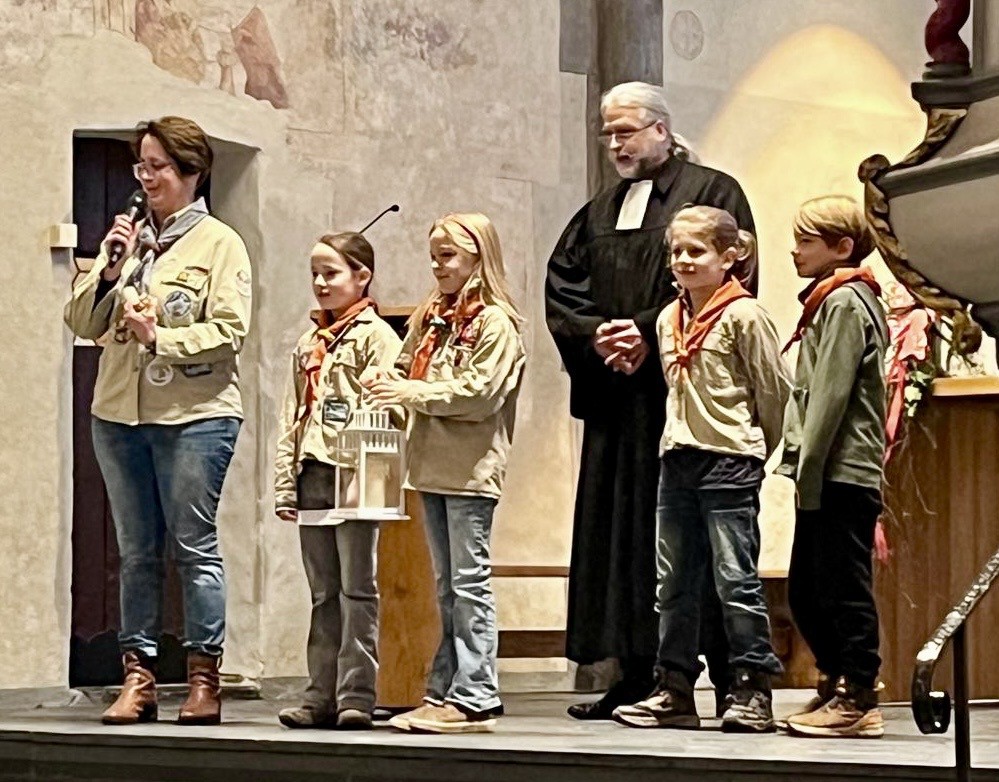 Pfadfinder der Lindenschule bringen uns das Friedenslicht