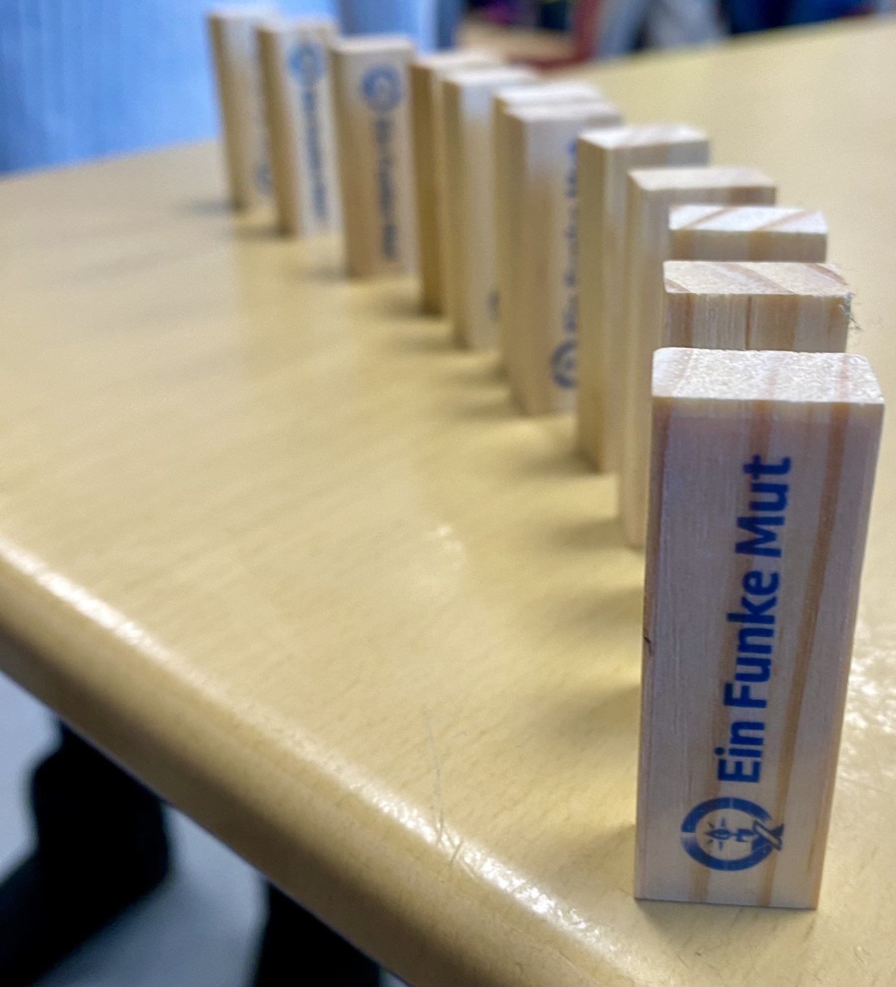 Zwei Pfadfinderinnen aus unserer Schule hatten dieses Licht, das aus der Stadt Bethlehem in alle Welt gebracht wird, am Sonntag im Kölner Dom abgeholt. Das Friedenslicht steht für Hoffnung und Zusammenhalt. Als Zeichen des Mutes und der Gemeinschaft bekam jede Klasse außerdem einen Mut-Stein. Er soll die Kinder dazu anstoßen, mutig zu sein, füreinander einzustehen und im Schulalltag achtsam miteinander umzugehen.